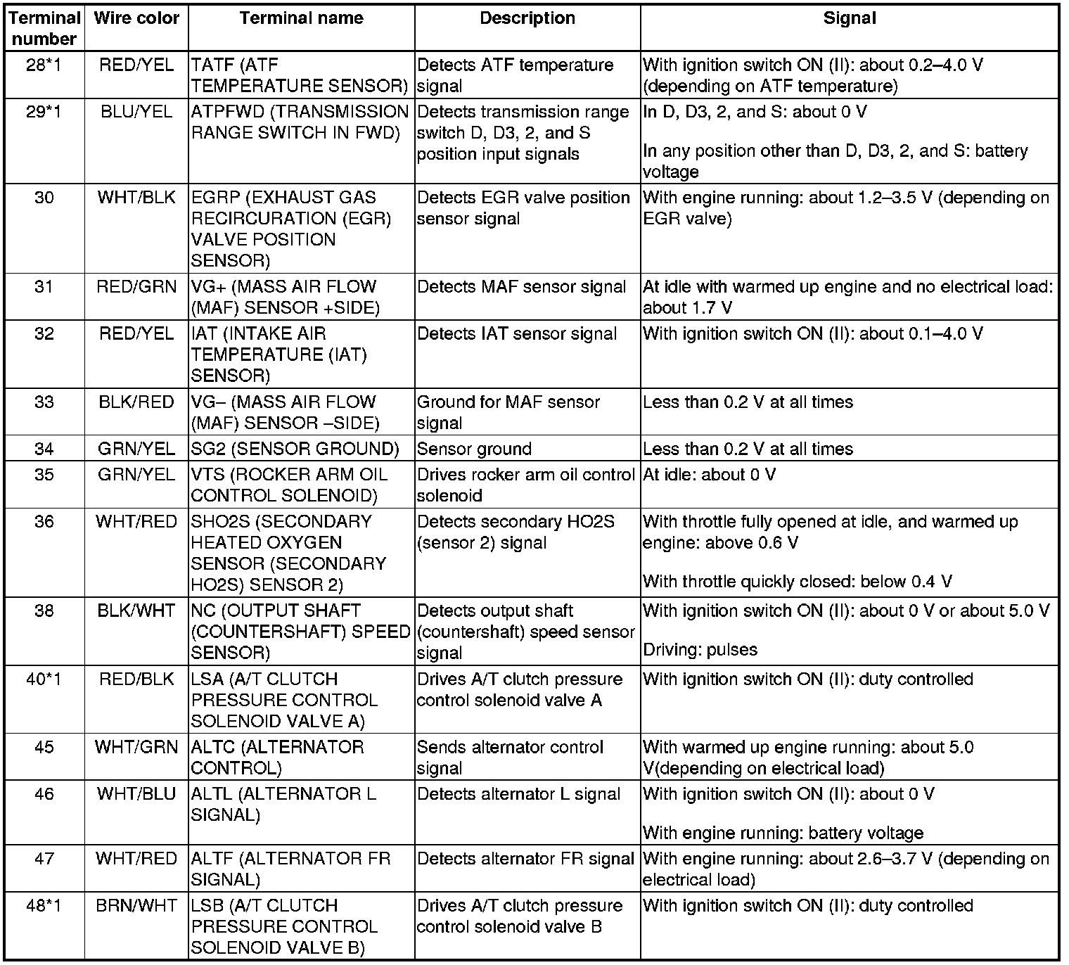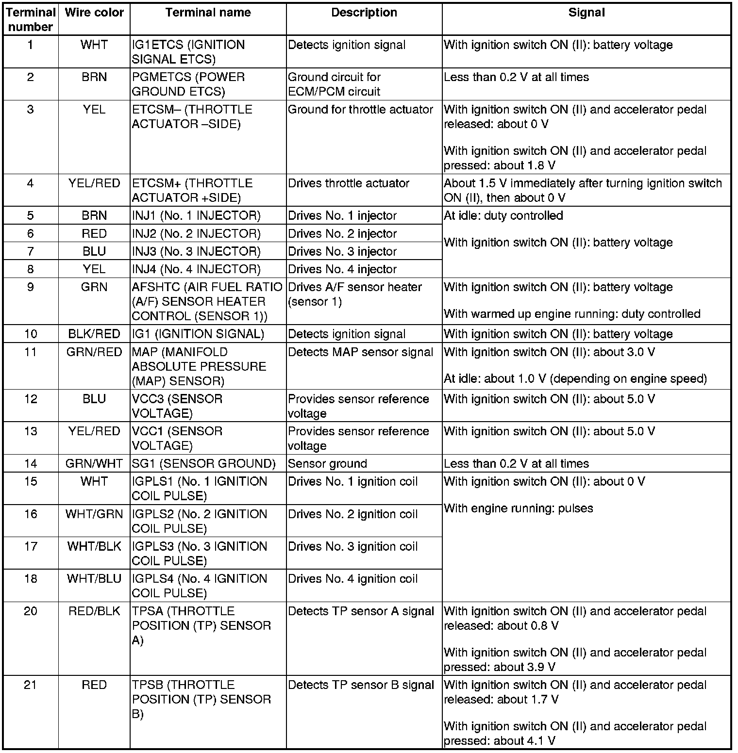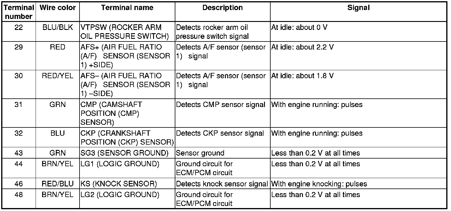 ECM/PCM Inputs and Outputs at ECM/PCM Connector A ((square)) (49P)