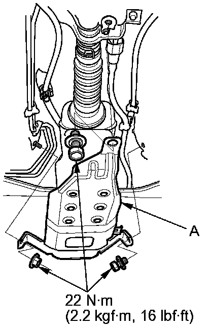 8. Remove the fuel tank mount bracket (A).