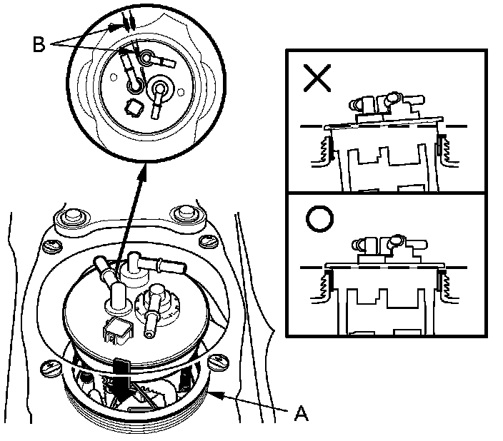 NOTE: To avoid a fuel leak, check the base gasket, visually or by hand, to make sure it is not pinched.