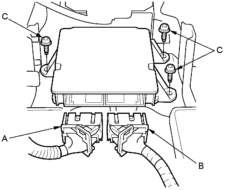 1. Install the SRS unit (A) with a new TORX bolts (B), then connect the connectors (C) to the SRS unit; push them into position until they click Service and Repair.