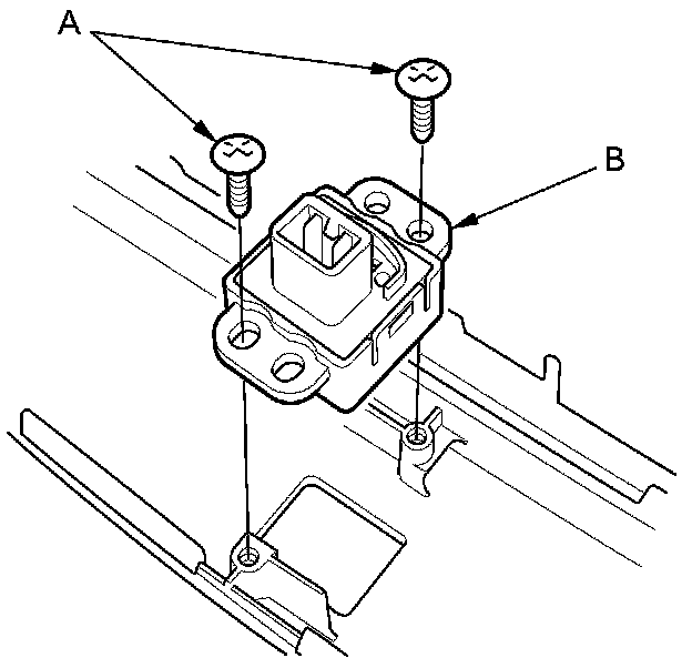 7. Remove the mounting screws (A) and push out the passenger's airbag cutoff indicator (B) from behind the center panel.