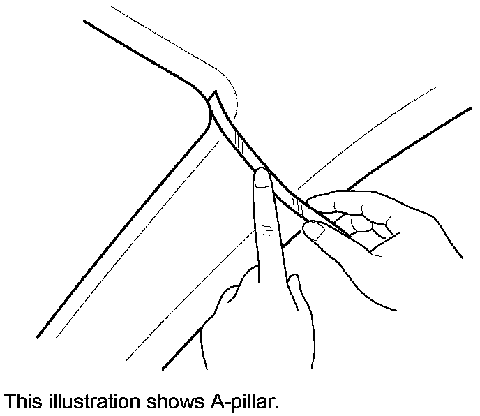 2. Apply masking tape to the headliner, mark the upper edge of each pillar trim.