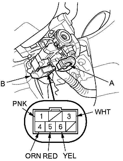 3. Disconnect the 7P connector (A) from the ignition switch (B).