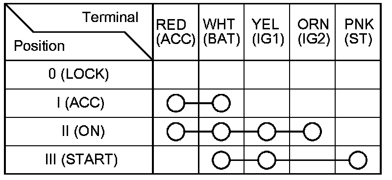 5. If the continuity is not as specified, replace the ignition switch Service and Repair.