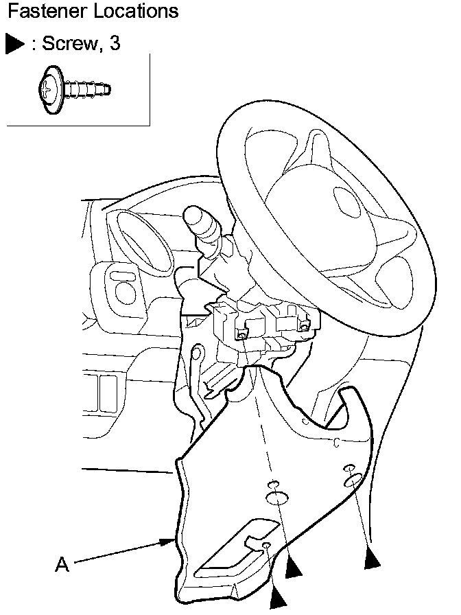 6. Remove the screws, then remove the lower column cover (A).