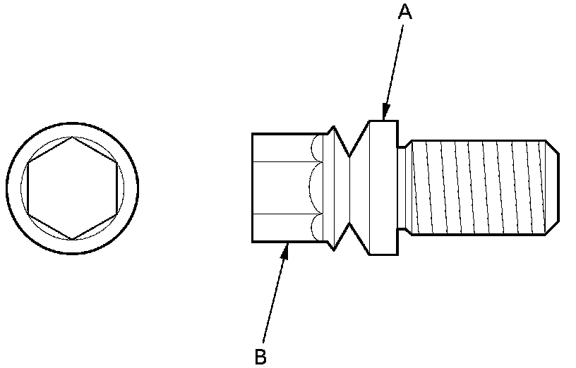 8. Tighten the shear bolts (A) until the hex heads (B) twist off.