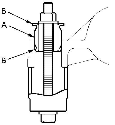 6. Install the gearbox mount cushion by tightening the nut until the mount cushion edges (B) contact the gearbox flange surface.