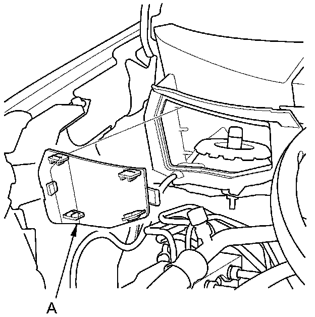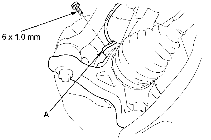 3. Remove the wheel speed sensor (A) from the knuckle. Do not disconnect the wheel speed sensor connector.