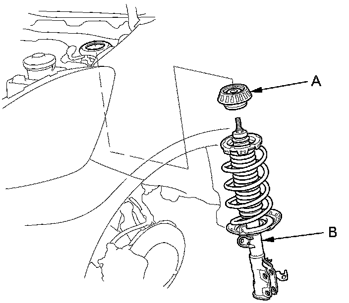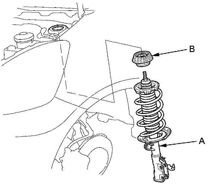 1. Install the damper rubber mount (A) and the damper/spring (B) onto the upper mount.