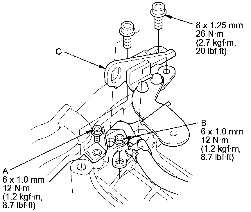 4. Remove the transmission hanger/air cleaner housing bracket (C).