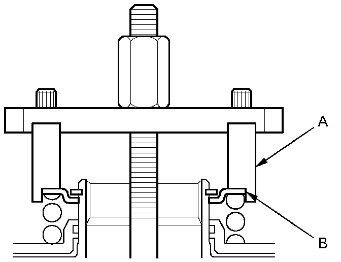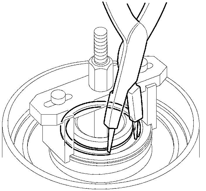 8. Check the placement of the clutch spring compressor attachment. If either end of the clutch spring compressor attachment is set over an area of the spring retainer that is unsupported by the return spring, the spring retainer may be damaged.