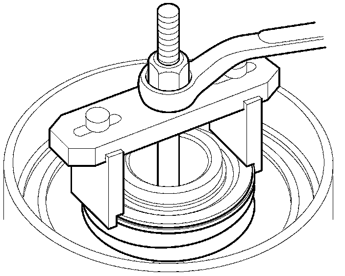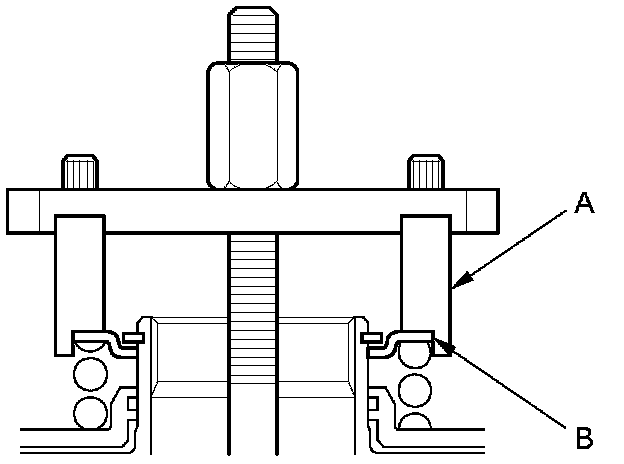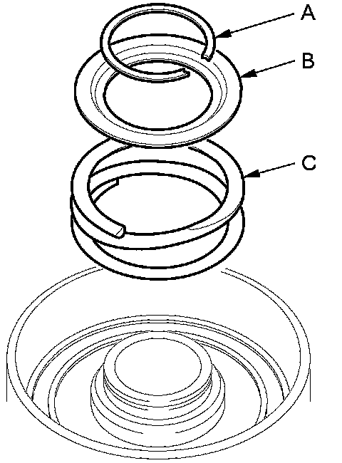 11. Check the placement of the clutch spring compressor attachment. If either end of the clutch spring compressor attachment is set over an area of the spring retainer that is unsupported by the return spring, the spring retainer may be damaged.