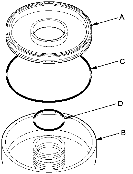 17. Remove the clutch piston (A) from the clutch drum (B) of the 1st, 2nd, and 4th clutches. Remove the O-ring (C) from the clutch piston, and O-ring (D) from the drum.