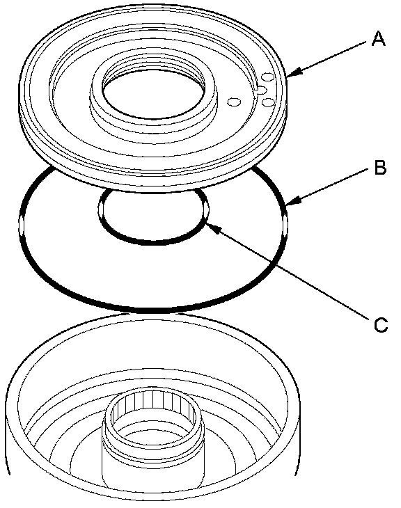 18. Remove the clutch piston (A) from the clutch drum of the 3rd and 5th clutches, and remove the outer O-ring (B) and inner O-ring (C) from the piston.