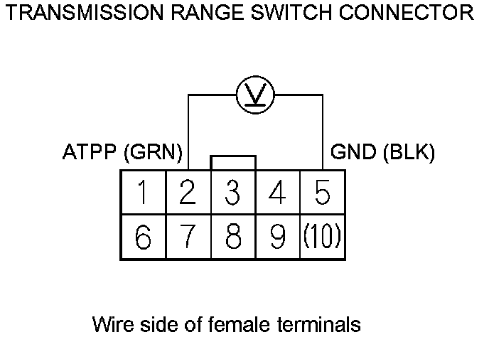 21. Measure the voltage between transmission range switch connector terminals No. 2 and No. 5.