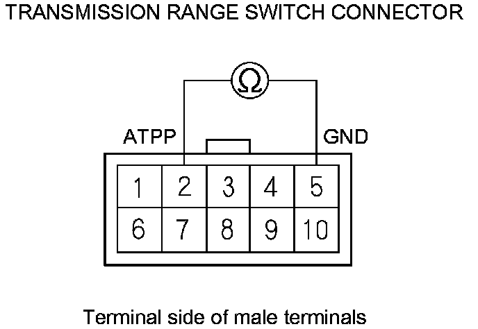 19. Check for continuity between transmission range switch connector terminal No. 5 and body ground.