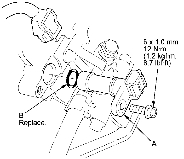 3. Install a new O-ring (B) on the new output shaft (countershaft) speed sensor, then install the output shaft (countershaft) speed sensor.