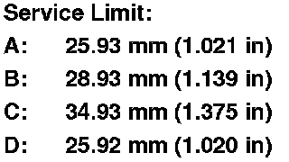 1. Inspect the gear and bearing surfaces for wear and damage, then measure the mainshaft at points A, B, C, D, and E. If any part of the mainshaft is less than the service limit (except E), replace it.