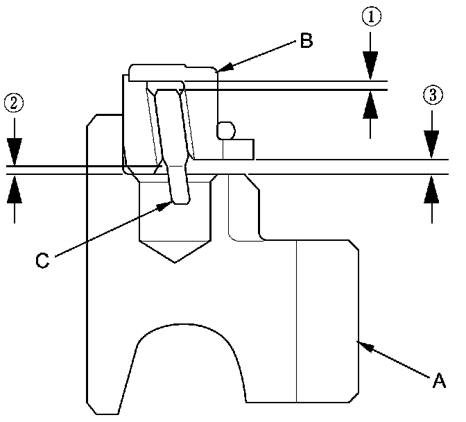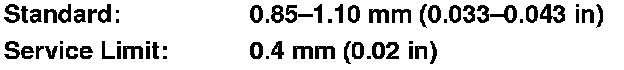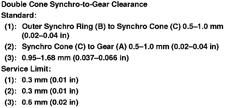 9. Measure the clearance between each gear (A) and its synchro ring (B) all around the gear. Hold the synchro ring against the gear evenly while measuring the clearance. If the clearance is less than the service limit, replace the synchro ring and gear.