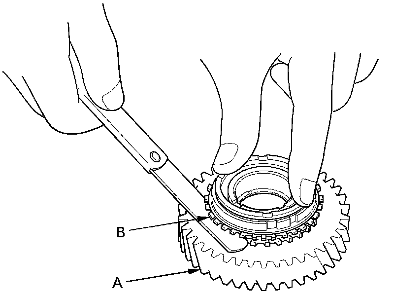 1. Inspect the synchro rings for scoring, cracks, and damage (A).