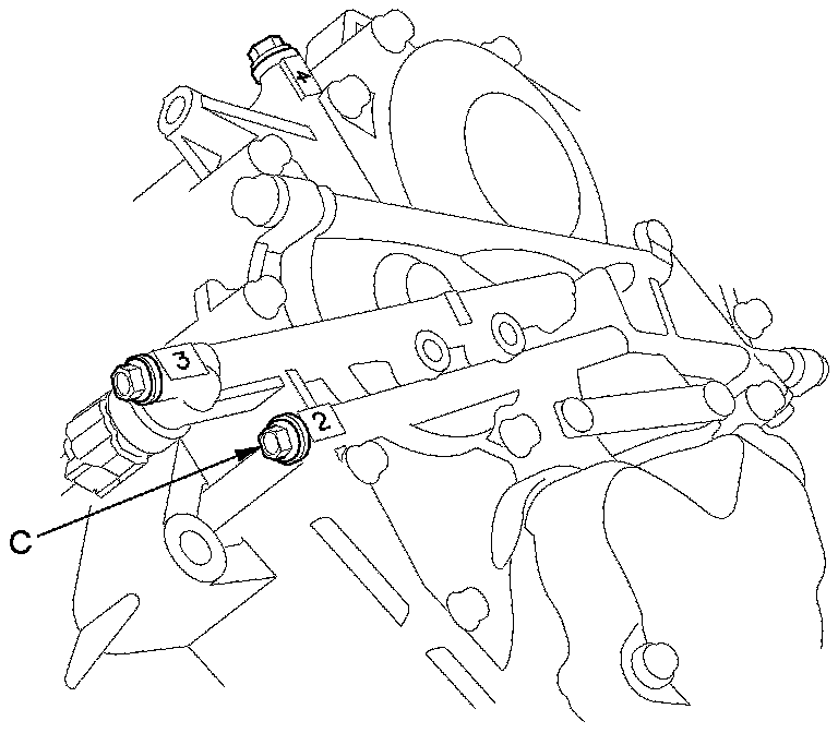 13. Connect the oil pressure gauge to the 2nd clutch pressure inspection port (C).