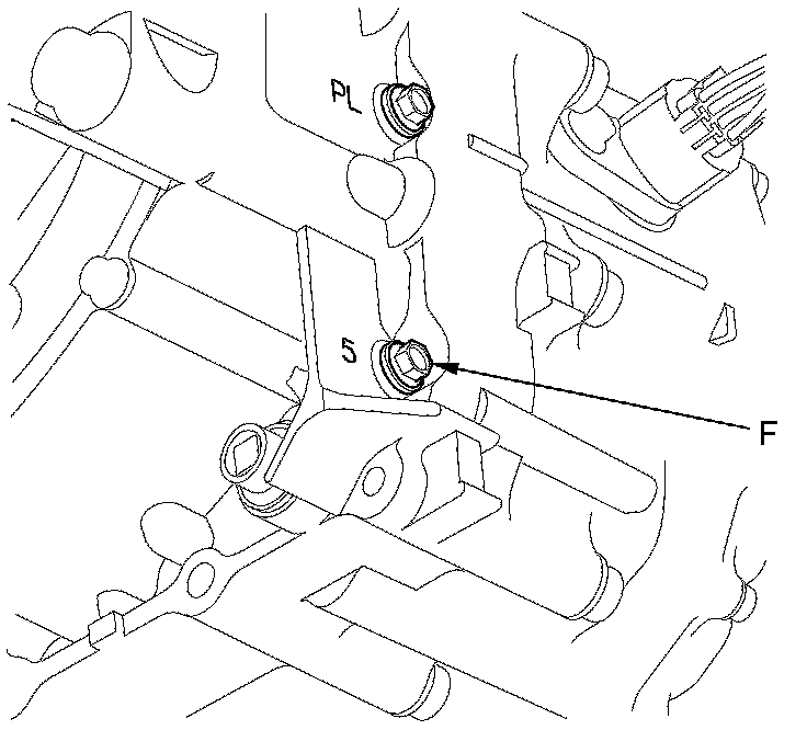 20. Connect the oil pressure gauge to the 5th clutch pressure inspection port (F).