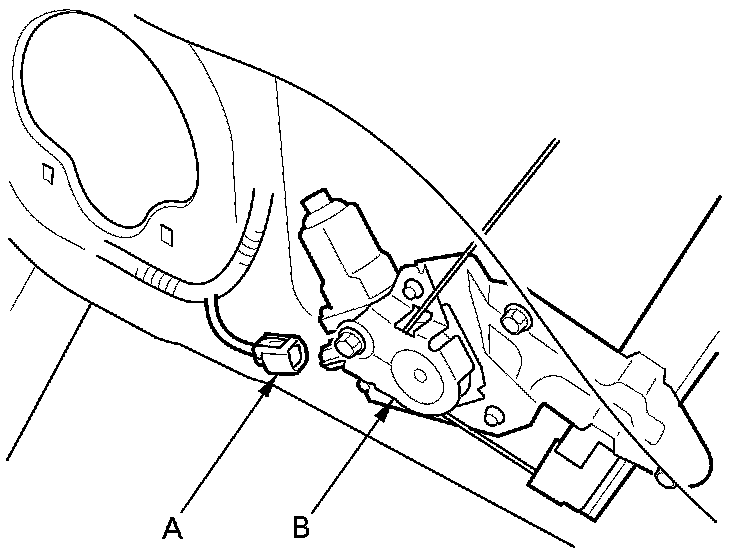 4. Disconnect the 2P connector (A) from the front passenger's power window motor (B).