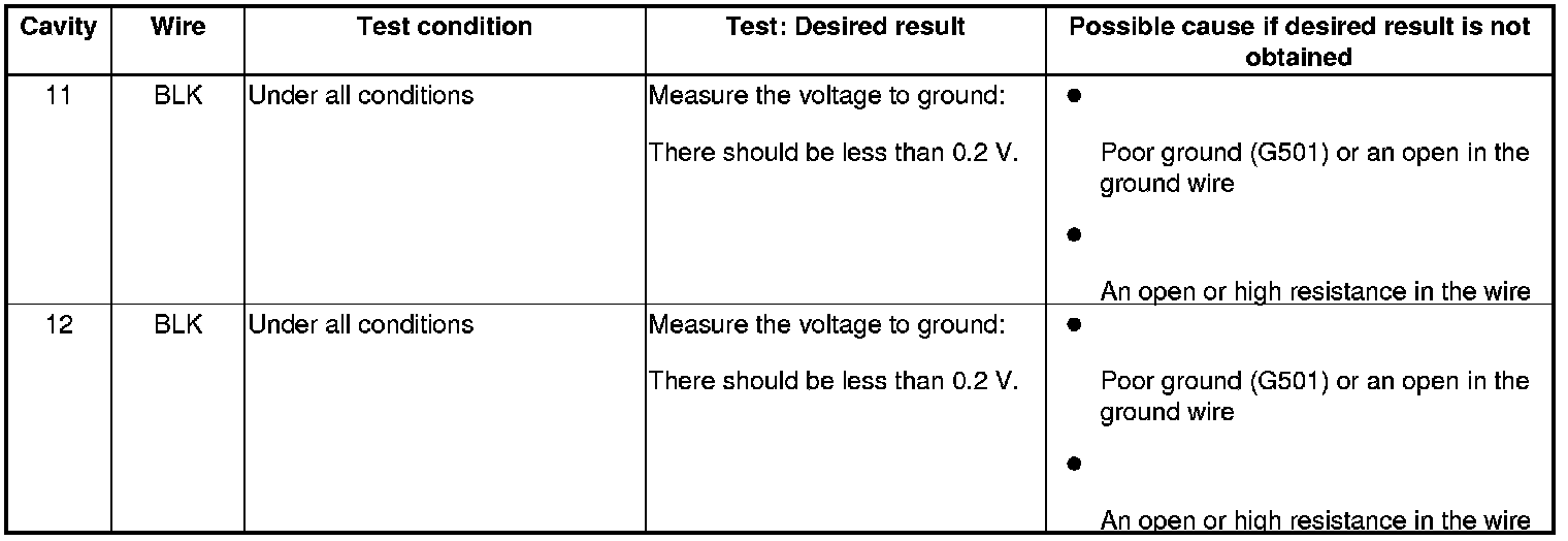 5. Reconnect the connector to the power window master switch. Turn the ignition switch to ON (II), and do these input tests at the following connector.