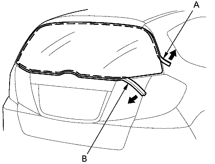 2. Remove rubber dams A and B from the edge of the rear window. If necessary, cut the rubber dam with a utility knife.