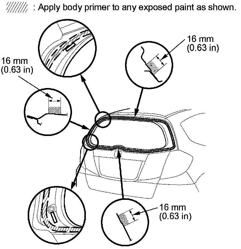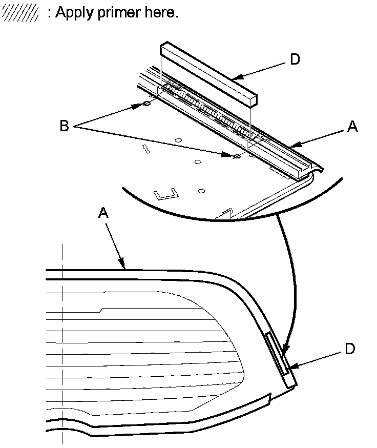 - Never touch the primed surfaces with your hands. If you do, the adhesive may not bond to the rear window properly, causing a leak after the rear window is installed.