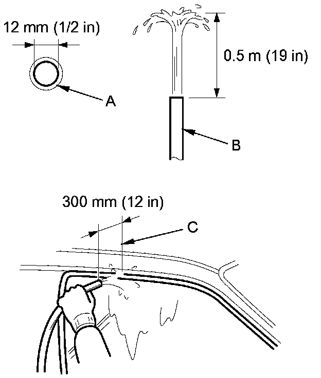 - Use a 12 mm (1/2 in) diameter hose (A).