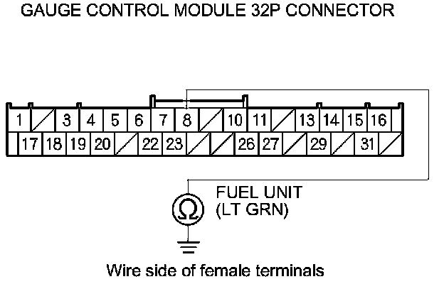 12. Check for continuity between gauge control module 32P connector terminal No. 8 and body ground.