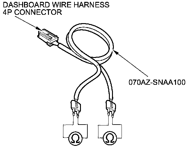 7. Connect the SRS inflator simulator (2 Ohms connectors) and simulator lead J to the dashboard wire harness.