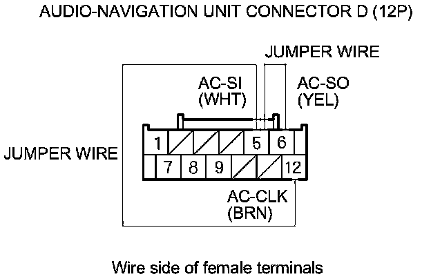8. Connect audio-navigation unit connector D (12P) terminals No. 5 and No. 6, and terminals No. 5 and
