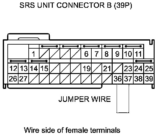 46. Install a jumper wire between SRS unit connector B (39P) terminals No. 36 and No. 37.