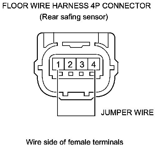 92. Install a jumper wire between the floor wire harness 4P connector (rear safing sensor) terminals No. 1 and No. 4.