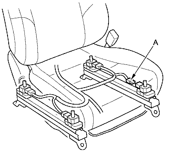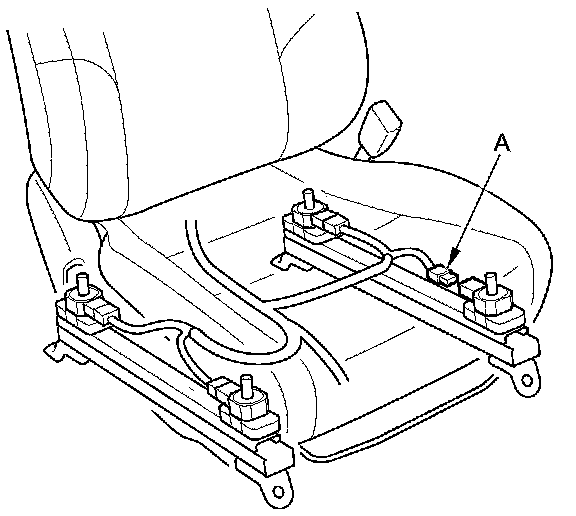 23. Disconnect the ODS unit harness 3P connector (A) from the front passenger's weight sensor (front inner side).