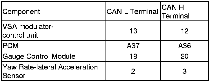 Check the COMMU PCM, COMMU GAUGE, and COMMU YAW RATE/G, in the VSA FREEZE DATA with the HDS. Then check the F-CAN communication lines continuity to the appropriate system or sensor and loose terminals in the appropriate system or sensor connectors.�