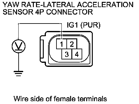 17. Measure the voltage between yaw rate-lateral acceleration sensor 4P connector terminal No. 1 and body ground.