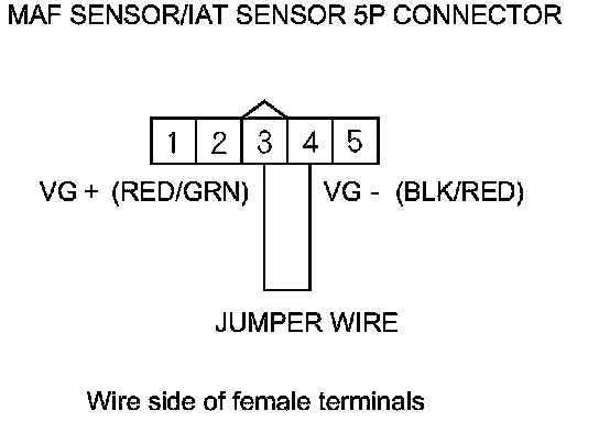 9. Connect MAF sensor/IAT sensor 5P connector terminals No. 3 and No. 4 with a jumper wire.