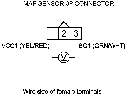 7. Measure the voltage between MAP sensor 3P connector terminals No. 1 and No. 3.