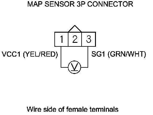 11. Measure the voltage between MAP sensor 3P connector terminals No. 1 and No. 3.