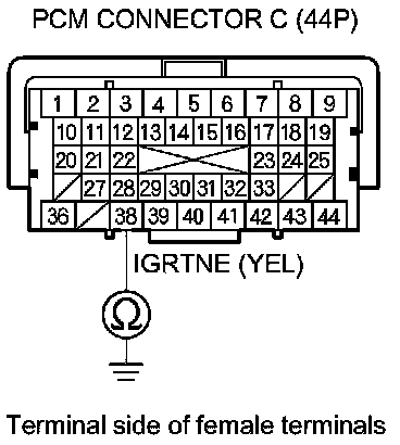 10. Continue to check for continuity between PCM connector terminal C38 and body ground while disconnecting the 3P connector from each exhaust side ignition coil, one at time.