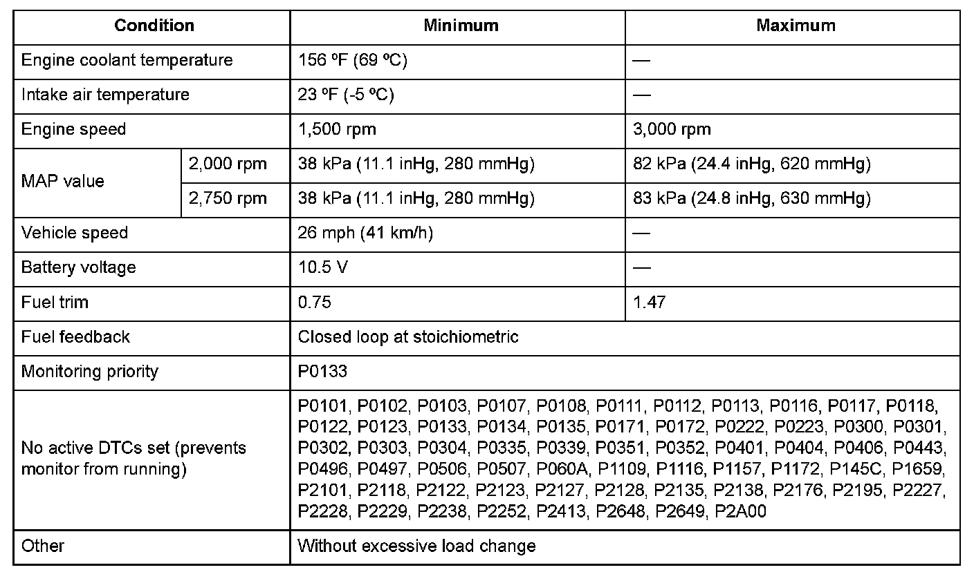 3. Drive immediately at a steady speed 26 mph (41 km/h) or more and engine speed between 1,500 - 3,000 rpm for at least 9 seconds.