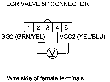 6. Measure the voltage between EGR valve 5P connector terminals No. 3 and No. 4.