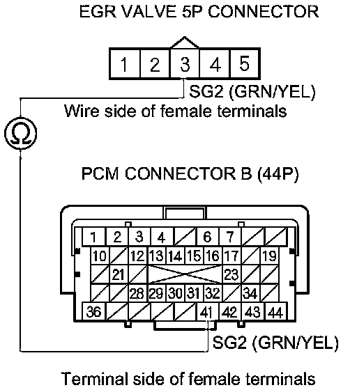 10. Check for continuity between PCM connector terminal B41 and EGR valve 5P connector terminal No. 3.