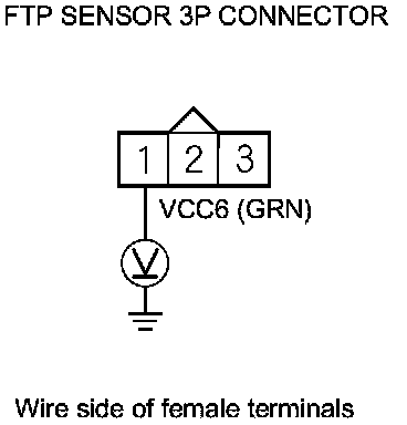 14. Measure the voltage between FTP sensor 3P connector terminal No. 1 and body ground.