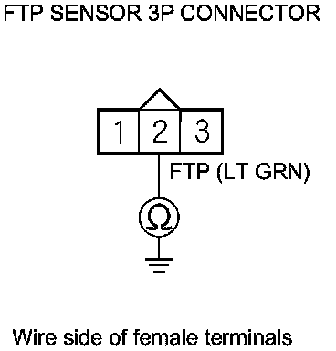 23. Check for continuity between FTP sensor 3P connector terminal No. 2 and body ground.