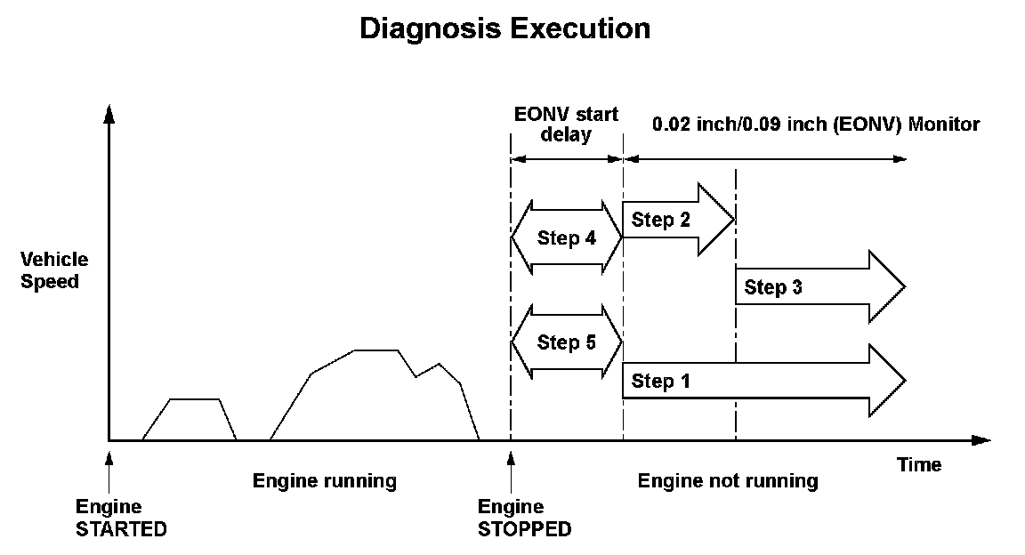 After the engine has stopped, the powertrain control module (PCM) monitors the variation of the FTP sensor output to detect "no 0.09 inch leak" depending on the variation of the pressure inside the fuel tank.