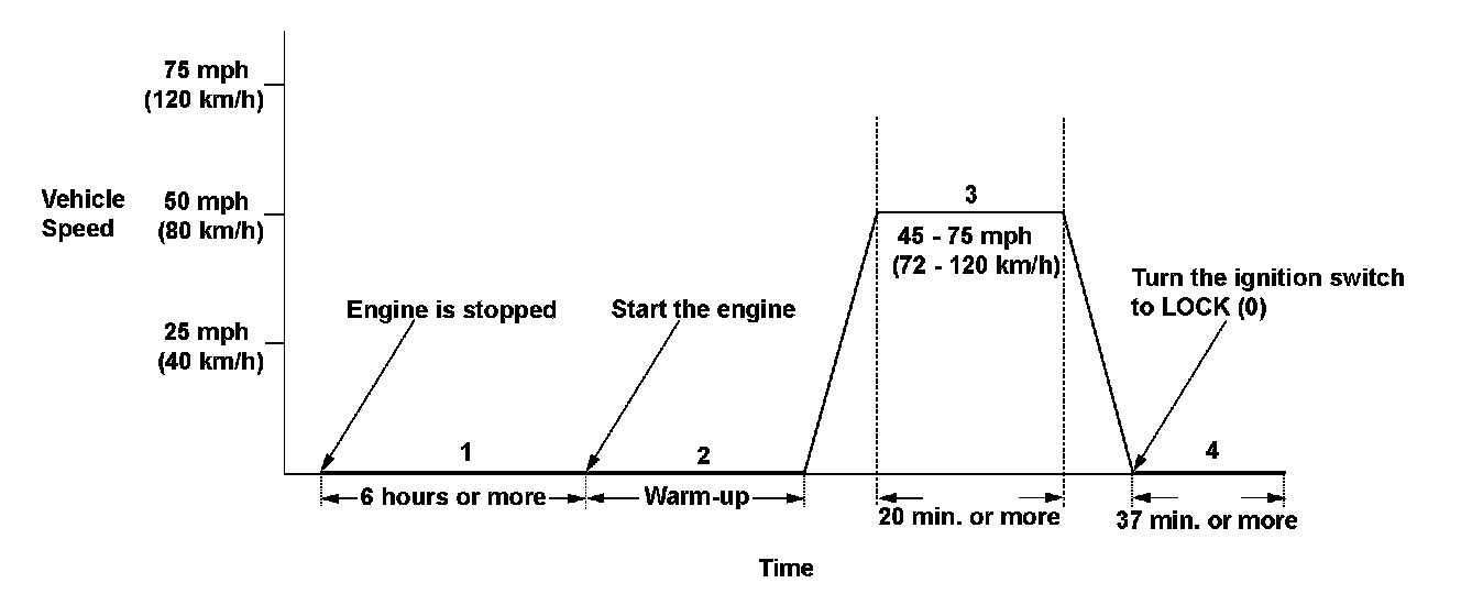 3. Drive the vehicle immediately at a speed between 45 - 75 mph (72 - 120 km/h) for at least 20 minutes.